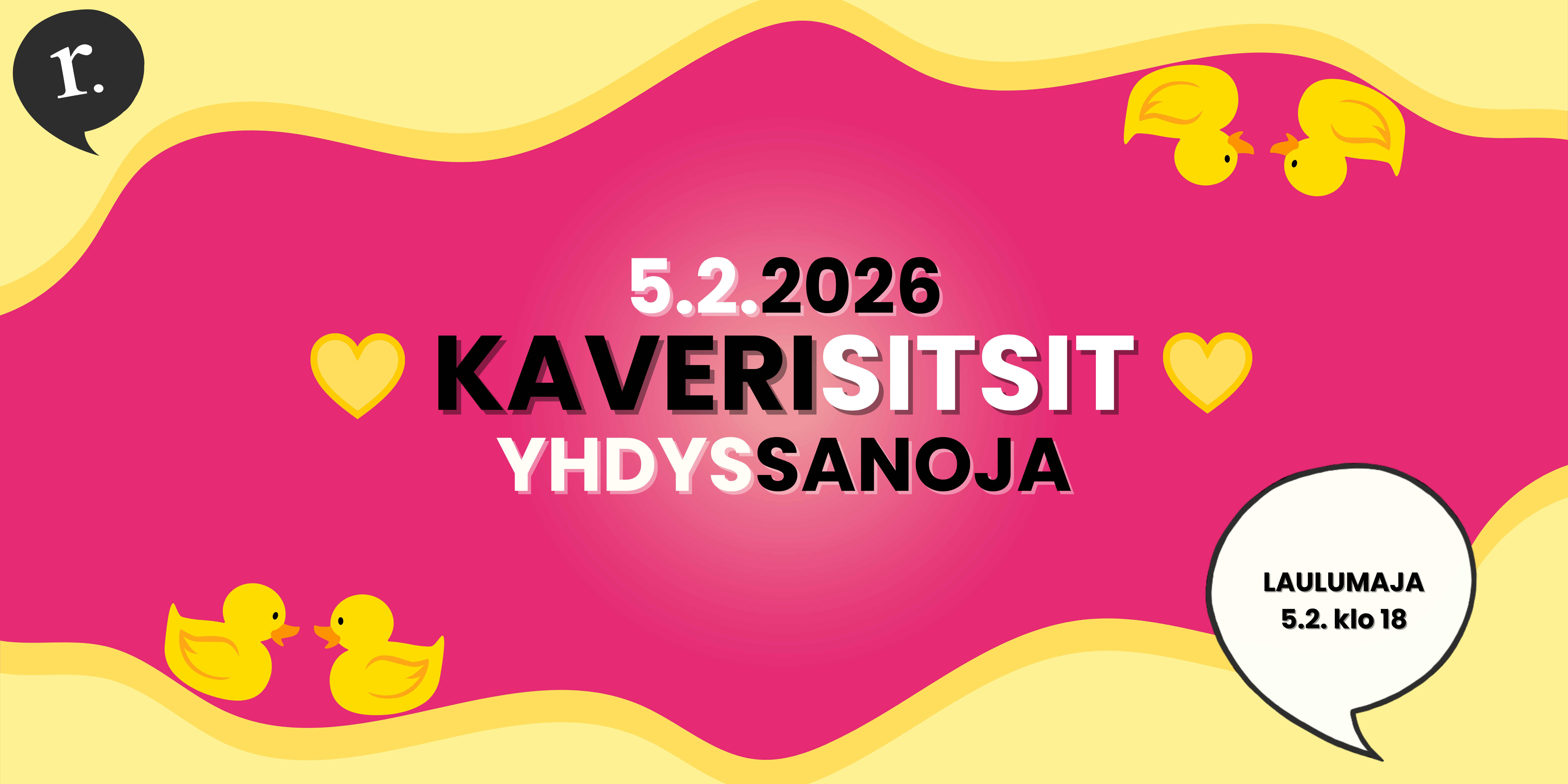 Haalarimerkki, bileilta tai kaverisitsit… Yhdyssanat yhdistävät merkityksellisiä kirjainjonoja, mutta myös tänä iltana meitä! Pukeudu siis sanallisesti teitä yhdistävään asuun kaverisi kanssa ja saavu sitsaamaan Laulumajalle 5.2.
