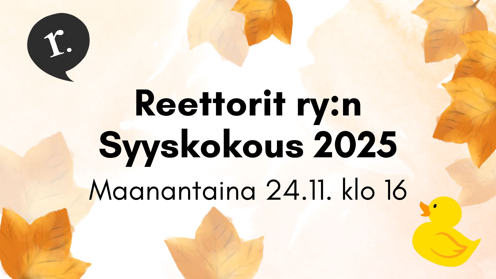Kaikilla Reettorit ry:n jäsenillä on kokouksessa puhe- ja äänioikeus. Syko onkin oiva tilaisuus tulla ottamaan selvää yhdistyksen suuntalinjoista, kommentoida niitä sekä olla osana vaikuttamassa ensi vuoden hallituksen kokoonpanoon!